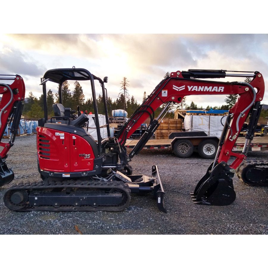 8,000 lbs. Rental Mini Excavator, Hydraulic Thumb, 4-Way Dozer Blade, Yanmar Model ViO35-6A-36 The most advanced excavator Yanmar has ever made. Introducing the most innovative, fuel-efficient excavator we’ve ever built. The advanced technology zero tail swing ViO35-6A features an electronically controlled Tier 4 engine that meets emissions regulations without the need for a diesel particulate filter. It also comes standard with ECO and Auto-Deceleration modes for even more operational efficiency, which means the new ViO35-6A can now deliver up to 20% less fuel consumption than previous models. The Yanmar ViO35-6A is the most productive digging, lifting, do-anything excavator you can buy. Yanmar has pioneered some of the industry's most innovative technology, including the first zero tail swing excavator.